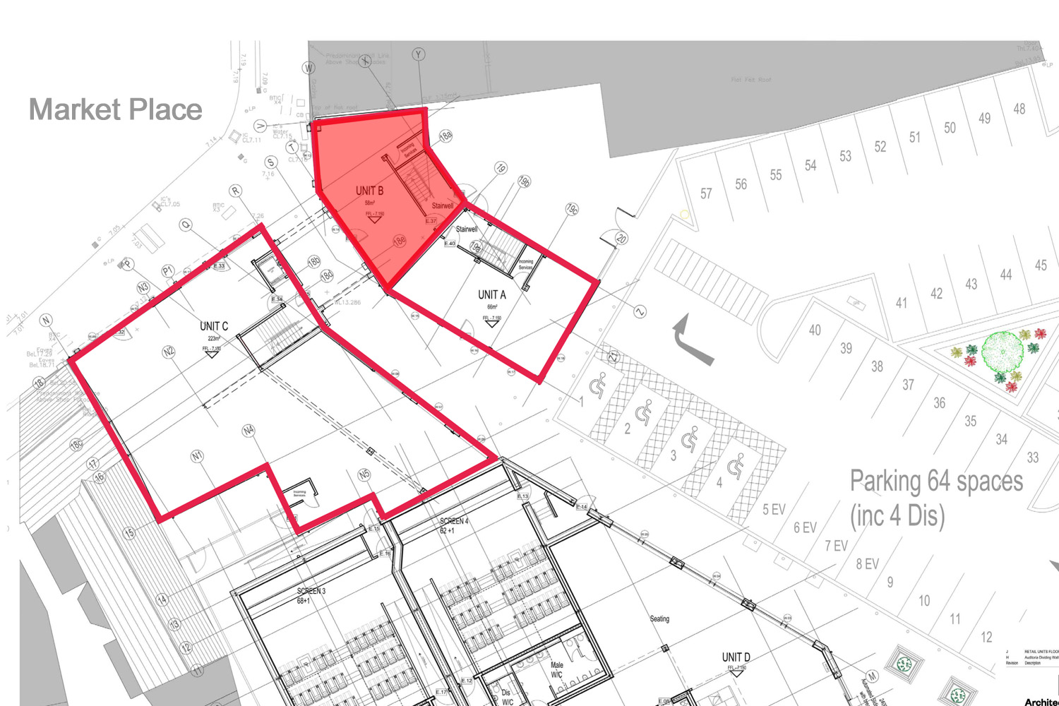 132 sq.m. (1,420 sq.ft.), ideal for retail or F&B, with frontage onto the new pedestrian link between the Market Place, Savoy Cinema and Marshalls Yard. Includes private rear access for deliveries.